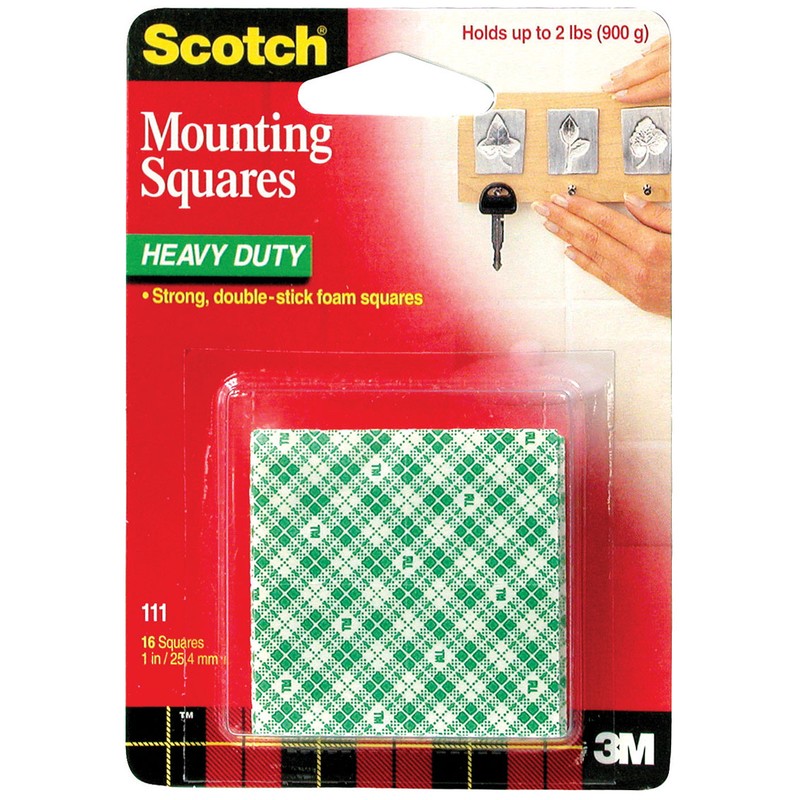 Лента являет собой клейкие монтажные квадраты 25х25 мм. Их используют для монтажа на твердых однородных поверхностях предметов, весом не более 900 грамм. Монтажные квадраты успешно могут заменить гвозди или шурупы. Перед поклейкой рабочую поверхность нужно очистить и обезжирить, а после наклеивания — оставить в покое на 1 час. Каждая упаковка содержит 16 монтажных квадратов толщиной 1,5 мм. -