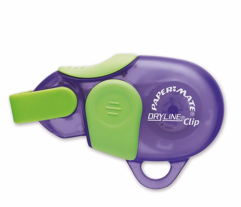 Имеет кольцо, позволяющее крепится к рюкзаку или сумке. Корректирующая лента Paper Mate DRYLINE Clip представляет собой быстросохнущий малогабаритный корректор, позволяющий мгновенно вносить правки в тексты, написанные или напечатанные на бумаге любого типа. Конструкция удобна в работе благодаря тщательно продуманной зоне захвата. Наличие специального предохранителя гарантирует отсутствие образования петель. Защитой наконечника от повреждений служит защитный колпачок. Также устройство снабжено кольцом, с помощью которого его можно закрепить на сумке или рюкзаке. -