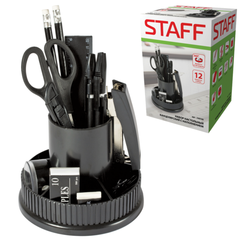 | Канцелярский набор STAFF эконом, 12 предметов, круглое основание, вращающаяся конструкция, 230745 |