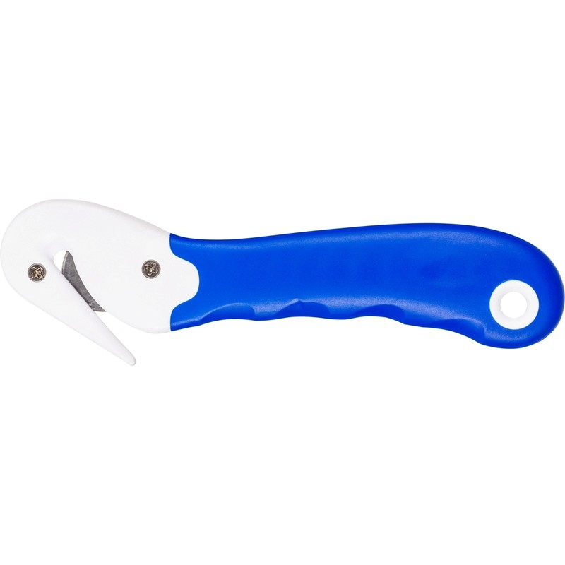Промышленный нож чаще всего применяется для разрезания коробок и шпагата. Лезвие безопасное, поскольку сам нож обладает фиксацией блокировки лезвия, поэтому риск травмирования минимальный Анатомическая удобная ручка изготовлена из ударопрочного пластика синего цвета. Благодаря уникальной форме данный нож могут использовать как правши, так и левши. Часто используется на складах, фабриках.