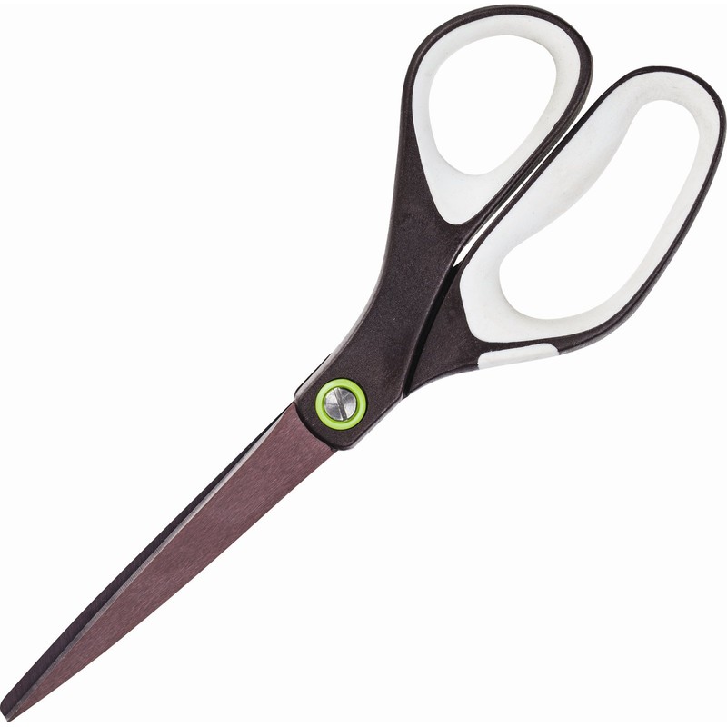 Канцелярские ножницы (офисные) Scotch «Анти-клей», подходящие для работы с различными материалами: бумага, картон, тонкий пластик, ткань, клейкая лента. Остроконечные лезвия, изготовленные из японской инструментальной стали с титановым покрытием, обладают повышенной прочностью. Дополнительное покрытие «анти-клей» исключает прилипание клейких частиц к поверхности металлической основы. Специальная конструкция крепления (металло-пластиковой муфты) в точке соединения лезвий выдерживает высокие нагрузки, обладает высокой долговечностью и обеспечивает плавность хода в течение всего срока эксплуатации. Эргономичные ручки анатомической формы оснащены прорезиненными манжетами белого цвета, предотвращающими скольжение пальцев. Не подвержены коррозии, даже при работе с материалами, содержащими растворы солей, щелочей, кислот. Длина ножниц — 20 cм.