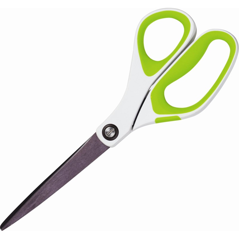 Канцелярские ножницы (офисные) Scotch 1458T, выполненные из инструментальной нержавеющей стали с титановым нано-покрытием, повышающим твердость и износостойкость лезвий. Технология прецизионной заточки обеспечивает долговечность режущих кромок. Мягкий и плавный ход лезвий достигается благодаря фторопластовому элементу крепления. Эргономичные кольца анатомической формы с резиновыми вставками позволяют работать с материалами любой плотности. Длина ножниц — 20 см.