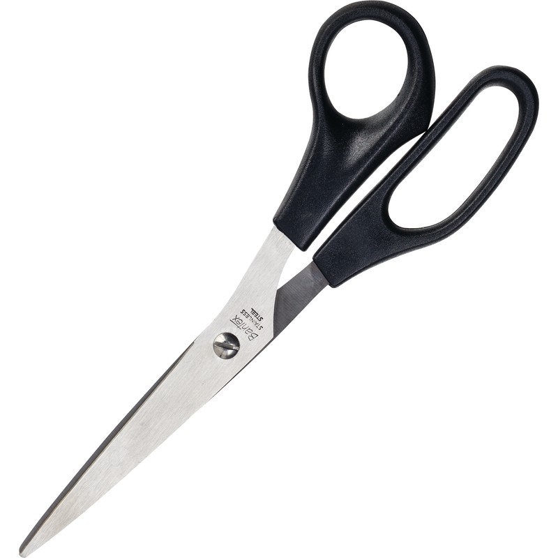 Канцелярские ножницы Bantex имеют длину 21 см и изготовлены из нержавеющей стали. Изделие имеет кольца разной, эргономической формы: одно продолговатое, другое — круглое, предназначенное для большого пальца руки. Ручки выполнены из АБС-пластика, поэтому не скользят в руке. Изделие предназначено для резания бумаги, а также тканей и картона. Ножницы поставляются в блистерной упаковке.