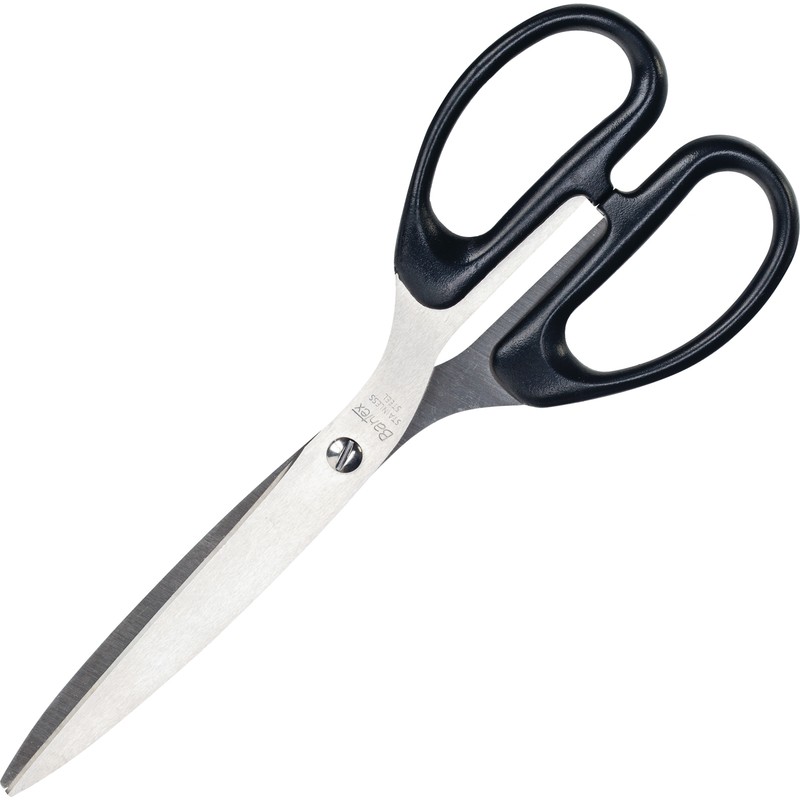Канцелярские ножницы (офисные) Bantex классического дизайна с лезвиями, выполненными из нержавеющей стали. Симметричные пластиковые ручки черного цвета обеспечивают безопасный и удобный захват. Длина ножниц — 21 см. Изделие представлено в блистерной упаковке.