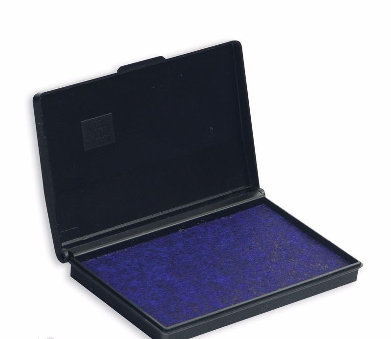 Настольная штемпельная подушка размером 90х50мм. заполнена краской на водной основе фиолетового цвета.
