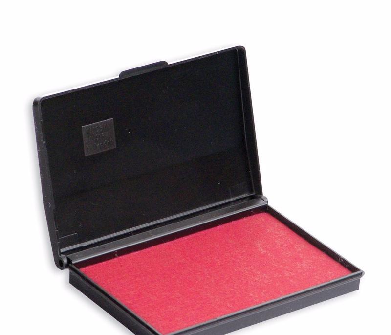 Настольная штемпельная подушка размером 90х50мм. Заполнена краской на водной основе красного цвета.
