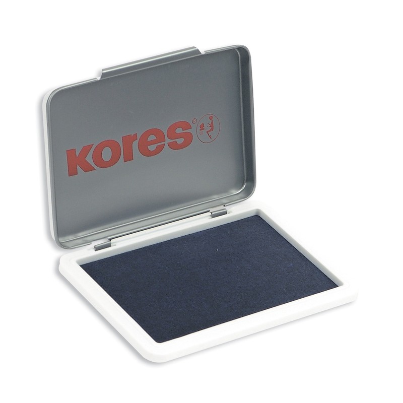 Штемпельная подушка Kores с краской синего цвета предназначена для работы с ручными штампами и печатями. Размер — 7×11 см. Металлический корпус с закрывающейся крышкой предотвращает высыхание.