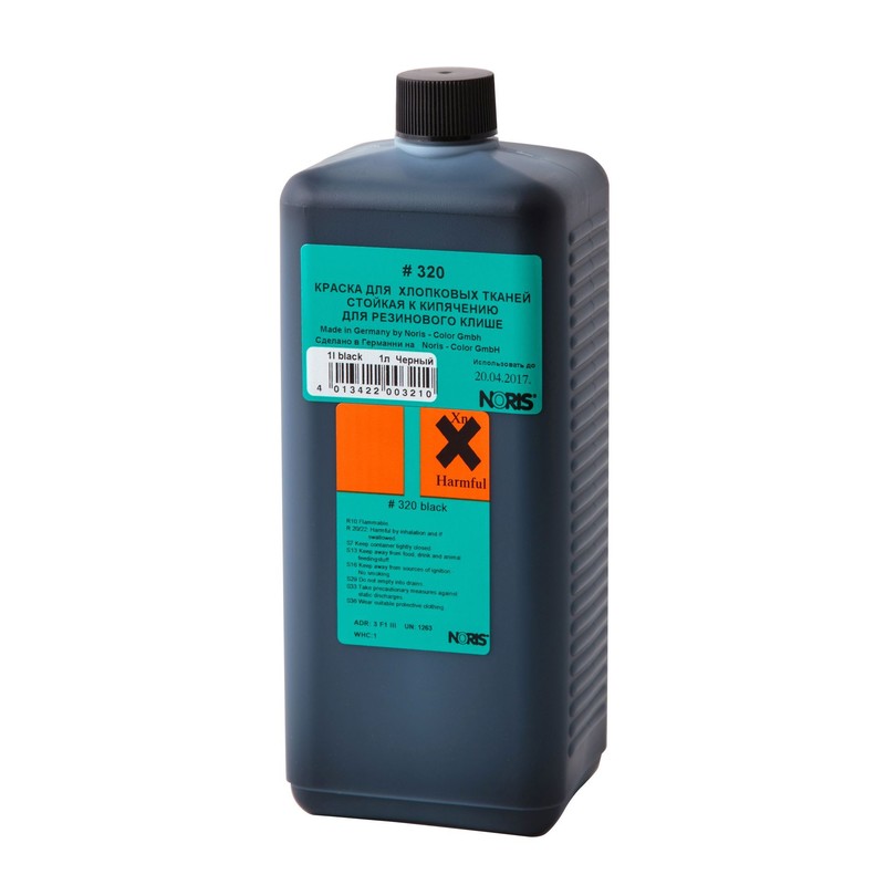 Краска штемпельная NORIS черная 1л, водостойкая (специальная для хлопковых тканей), 320Eч