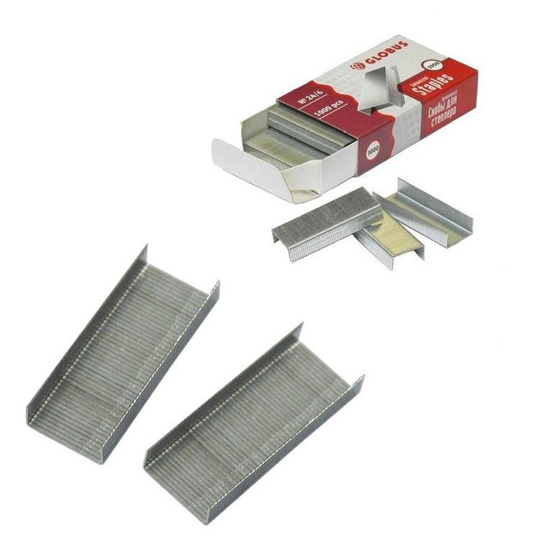 Скобы для степлера № 24/6 Globus предназначены для степлеров со сшивающей способностью до 25 листов. Скобы № 24/6 выполнены из стали. 1000 скоб в картонной пачке.
