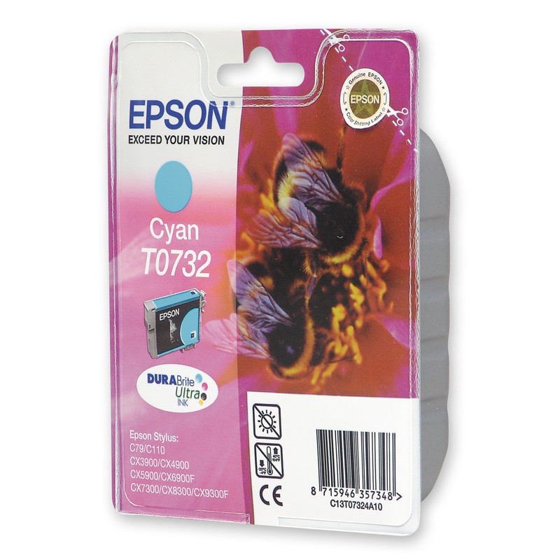 Голубой картридж Epson T0732 C13T10524A10/C13T07324 для Epson Stylus C79/C110/CX3900/CX4900/CX5900/CX6900F/CX7300/CX8300/X9300F/TX200/TX209/ TХ210/TX219/TX400/TX409/TX410/TX419/TX550W/Office T30/T40W/TX300F/ ТХ510FN/TX600FW.