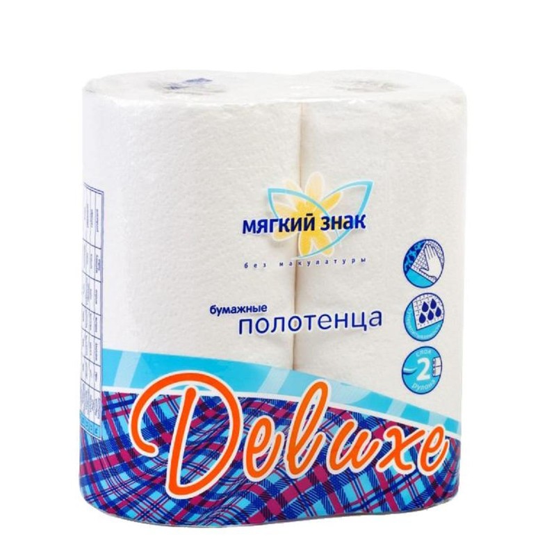 Полотенца бумажные «Мягкий знак» Deluxe 2-слойные белого цвета, с тиснением. Изготовлены из стопроцентной целлюлозы, не содержат макулатуры. Бумажные полотенца подходят для кухонного использования. Рулон длиной 12 м разделен перфорацией на 48 листов размером 25×23 см. В упаковке 2 рулона.