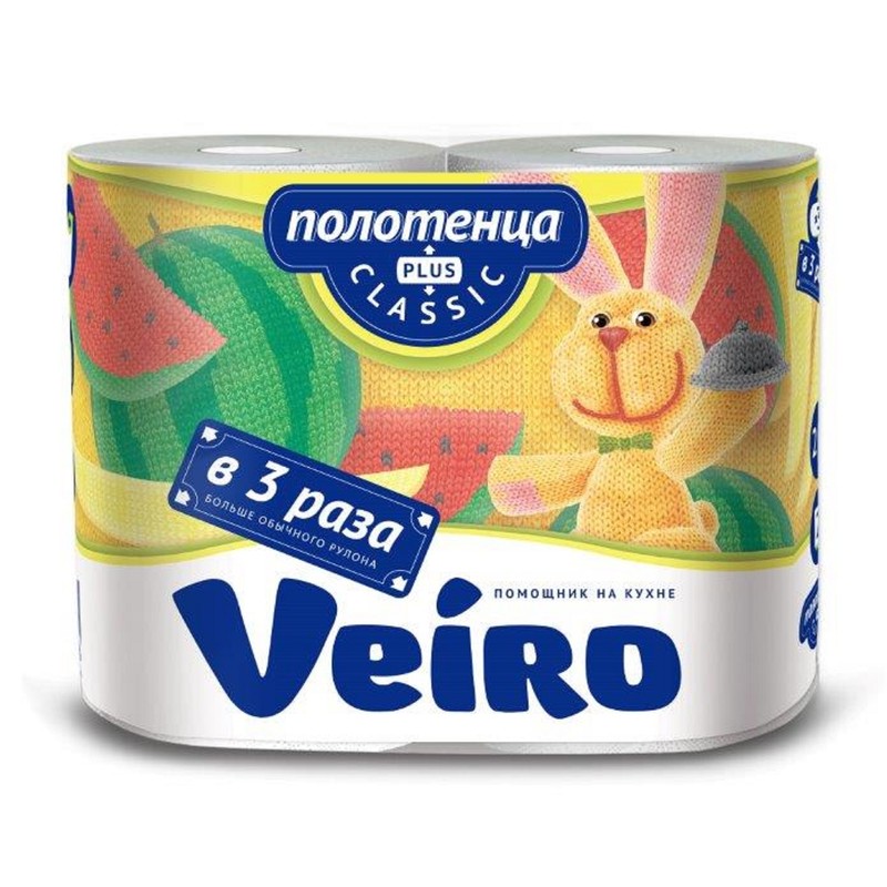 Бумажные полотенца Veiro Classic Plus белого цвета, с тиснением. Состоят из двух слоев, не имеют запаха. Изготовлены из стопроцентной целлюлозы. В упаковке два рулона. Каждый рулон увеличенной длины 37,5 м включает 150 отрывных листов размером 25×22 см, разделенных перфорацией. Бумажные полотенца обладают повышенной прочностью, быстро впитывают жидкость, подходят для протирания посуды, стеклянных изделий и зеркал.