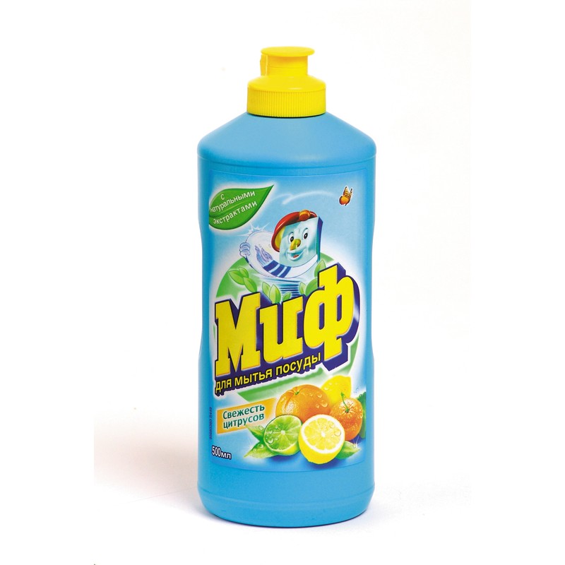Жидкость «Миф» предназначена для мытья посуды, а также подходит для проведения всех работ, связанных с общей уборкой в доме. В состав изделия входят экстракты фруктов и цветов, поэтому при использовании жидкость благотворно влияет на чувствительную кожу рук. Средство также устраняет жиры и микробы с поверхности посуды даже при мытье в прохладной воде.