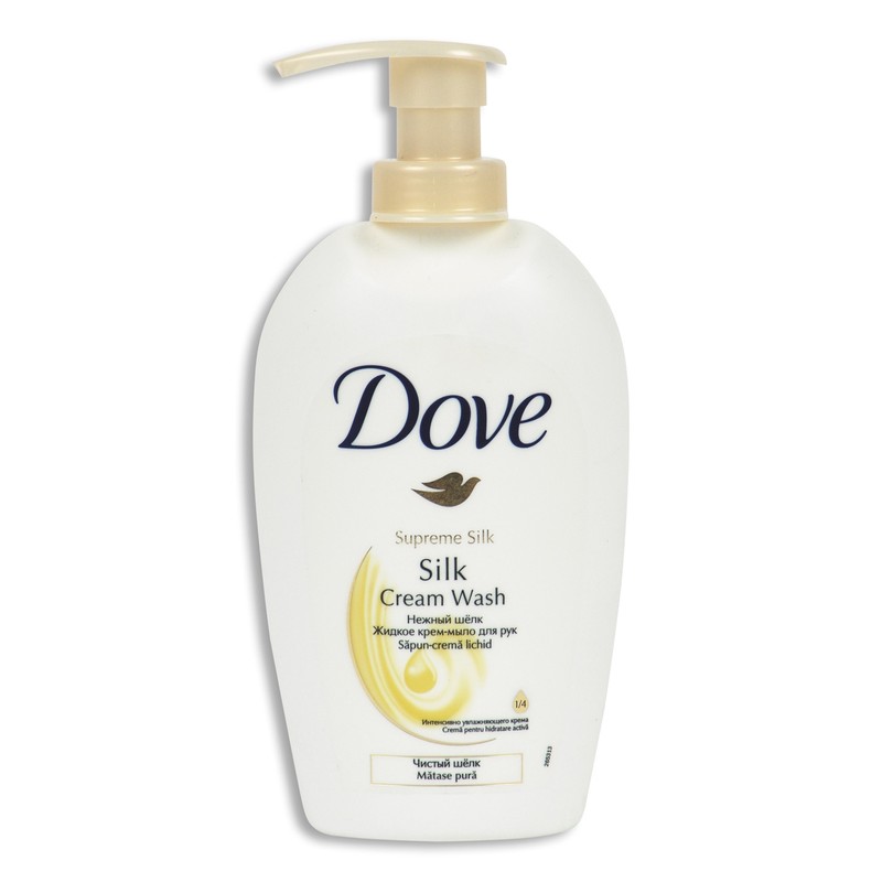 Жидкое крем-мыло Dove с отдушками в ассортименте: «Сияние шелка», «Прикосновение свежести», «Оригинальное». На четверть состоит из увлажняющего крема, имеет нейтральный уровень pH, не содержит щелочи. Мыло обеспечивает оптимальное увлажнение и питание кожи, препятствует пересушиванию и разрушению эпидермиса. Поставляется в экономичных флаконах с дозатором, объем — 250 мл. Использование таких флаконов более гигиенично, поскольку исключается возможность попадания бактерий внутрь.