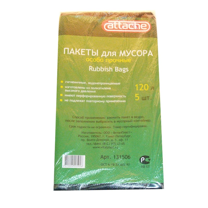 | Пакеты для мусора ATTACHE ВД 120л,55 мкм,5 шт./ул.,ос.проч. |