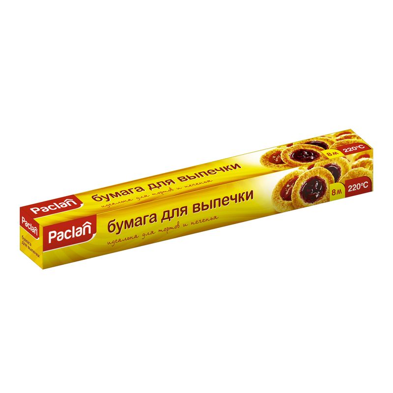 Бумага для выпечки Paclan имеет двухстороннее силиконовое покрытие, предотвращающее прилипание и пригорание изделий. Готова к использованию, дополнительного смазывания жиром не требуется. Влагостойкая бумага может использоваться многократно — до 8 раз. Она протирается влажной губкой. Бумага белого цвета, имеющая высокую воздухопроницаемость, может использоваться и в духовке, и в микроволновой печи. Температура может достигать 220 градусов.