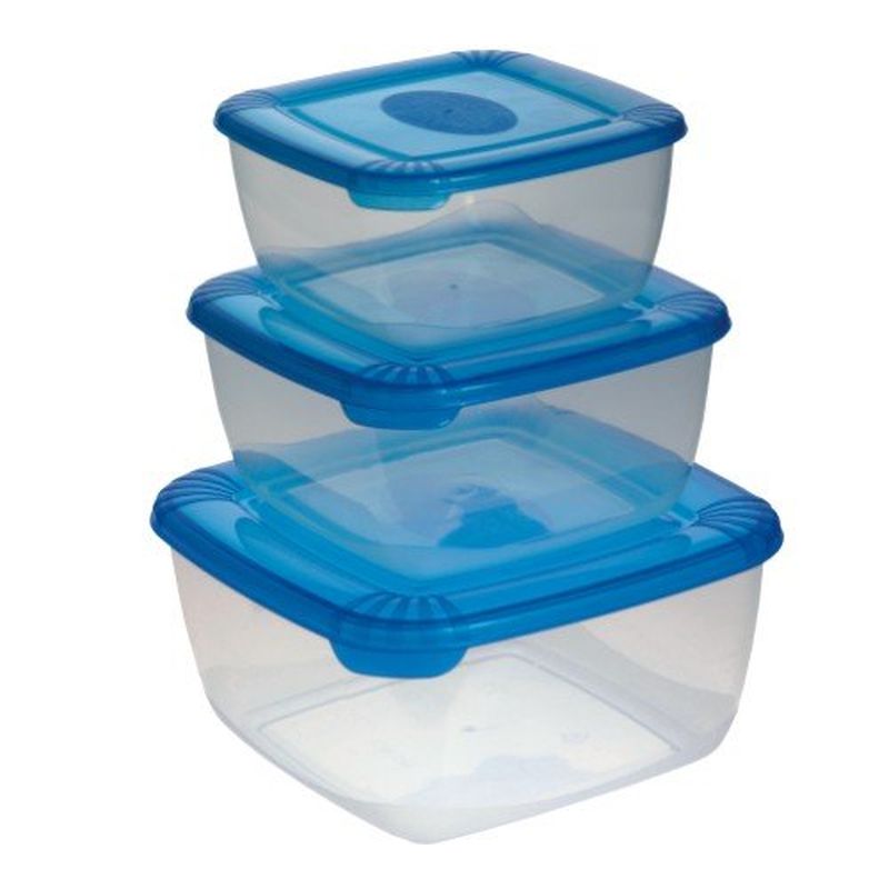 Набор квадратных контейнеров для еды Polar. В комплекте три емкости объемом 0,5, 1,0 и 2,5 л. Контейнеры для еды выполнены из прозрачного пластика, устойчивого к высоким температурам, снабжены плотно прилегающими крышками. Контейнеры пластиковые для продуктов подходят для разогревания в микроволновой печи.