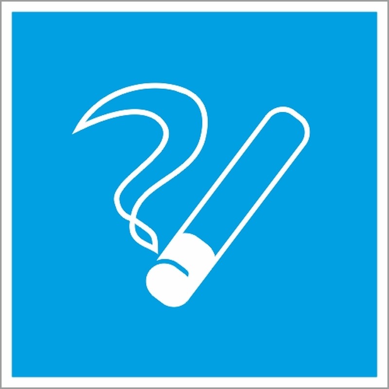 Знак безопасности D03 «Место курения», предназначенный для обозначения мест, где разрешено курение. Знак квадратной формы с белым изображением на голубом фоне выполнен из ПВХ-пленки размером 200×200 мм. Хорошо держится на любой поверхности благодаря самоклеющейся основе.