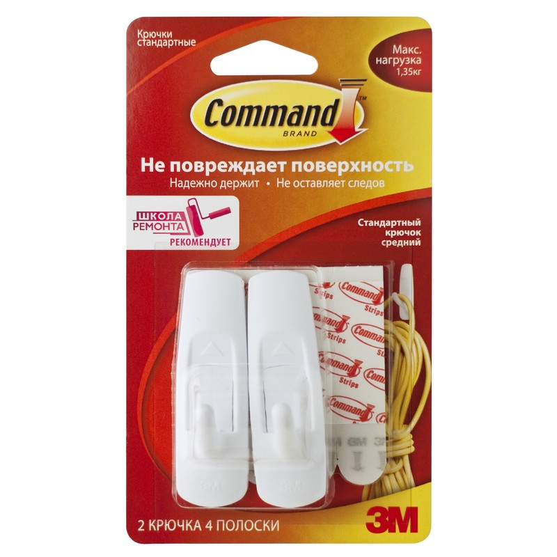 | Крючок Command белый 1,35 кг., 2 шт./4 пол. |