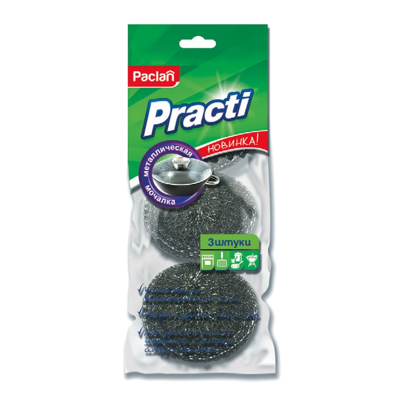 | Губка-мочалка металлическая средняя D=7,5 см. вес=14гр. 3шт./уп. PACLAN |