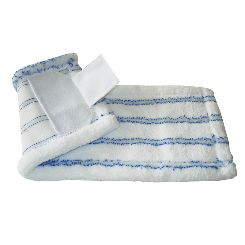 Универсальная насадка может использоваться для всех видов швабр-флаундеров благодаря наличию креплений-ушей. Материал насадки — стопроцентная микрофибра (80% полиэстера и 20% полиамида). Можно стирать до 100 раз при температуре 90 градусов, без потери вида и функциональности насадки. Для более эффективной очистки пола имеет вставки мягкого абразивного материала.
