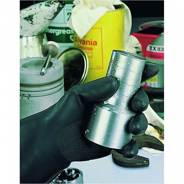 Перчатки Ansell «Неотоп» (размер 9,5-10) применяются для защиты рук в сельском хозяйстве, химической и нефтяной промышленности, при работе с механизмами. Материал неопрен устойчив к воздействию концентрированных щелочей и кислот (до 99 %), предохраняет от мелких и средних травм на производстве. Внутренний хлопковый слой предотвращает раздражение кожи рук. Изделия толщиной 0,75 мм сохраняют эластичность при низких температурах. Длина перчаток 30 см.