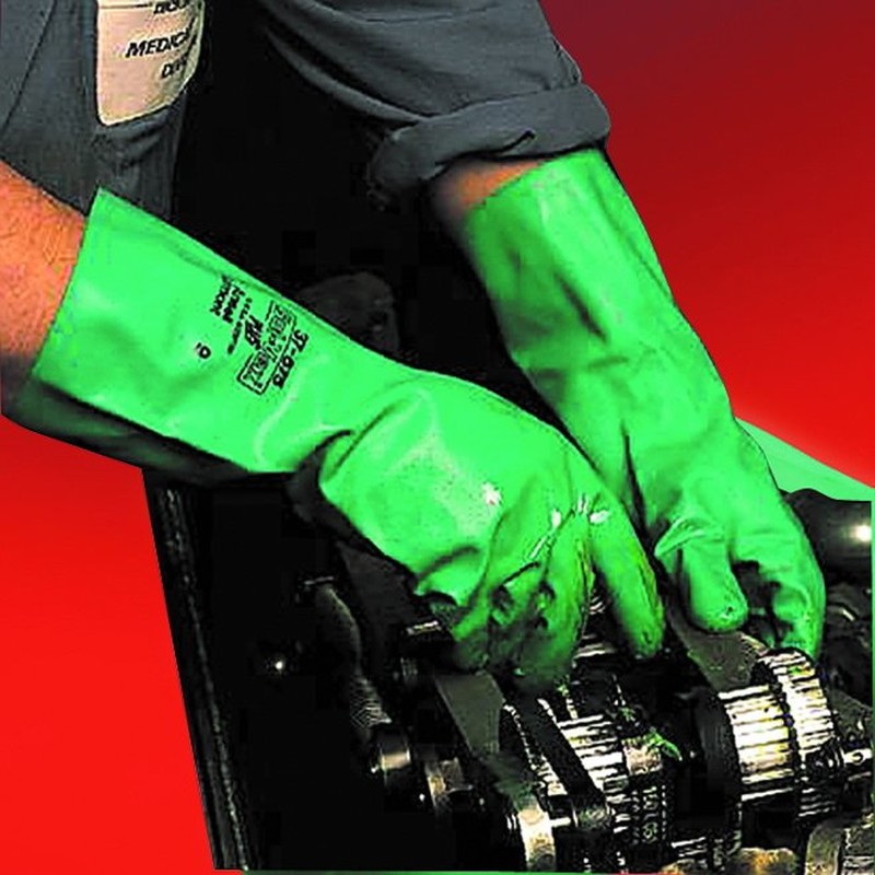 Перчатки Ansell «Солвекс» (размер 9) демонстрируют отличную механическую прочность и стойкость к спиртам, нефтепродуктам, органическим растворителям, кислотам (до 80 %). Выполнены из высококачественного нитрила, превосходящего по своим защитным свойствам бутилкаучук. Рифленый наружный слой изделий обеспечивает надежный хват, а хлопковое напыление внутри перчатки с антибактериальной обработкой предотвращает раздражение кожи рук.. Изделия толщиной 0,35 мм рекомендуются к использованию в тяжелой и химической промышленности. Длина перчаток 33 см.
