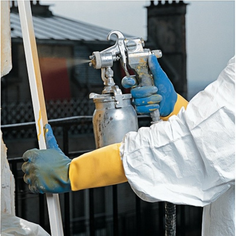 Перчатки Duo-Mix 405 MAPA 7 размера двухслойные, выполненные из неопрена с латексом, имеют внутреннее хлопковое напыление с антибактериальной пропиткой. Изделие предназначено для работы с растворами кислот и щелочей, солями и кетонами, неорганическими растворителями и моющими средствами. Перчатки толщиной 0,7 мм имеют удлинённые манжеты с рельефной отделкой.