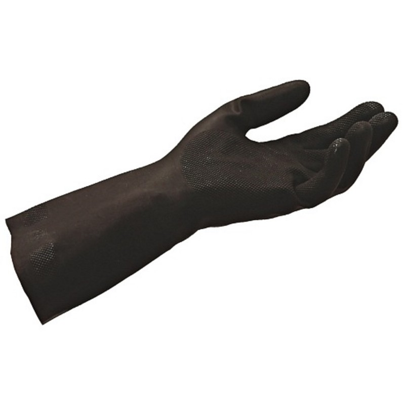 Перчатки Technic 401 MAPA 9 размера, выполненные из 100% неопрена, имеют хлопковое внутреннее напыление и текстурированную поверхность на ладони и пальцах. Изделие толщиной 0,5 мм, защищающее от широкого спектра химических рисков, является устойчивым к нефтепродуктам и химикатам. Перчатки даже при низких температурах сохраняют эластичность. Длина изделия составляет 31 см