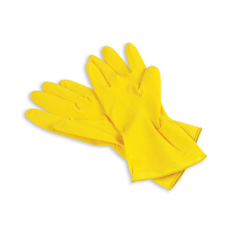 Защитные перчатки размера L желтого цвета выполнены из стопроцентного латекса. Предназначены для использования во время уборки, стирки, садовых работ, очистки посуды от сложных загрязнений, мытья автомобиля. Перчатки надежно защищают от воздействия вредных моющих веществ, попадания на кожу краски, грязи, продуктов питания, предотвращают проникновение влаги. Поставляются в мягкой упаковке.