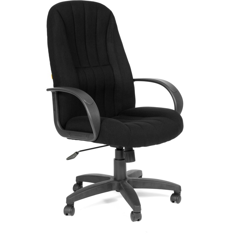Кресло для руководителя обито тканью черного цвета, крестовина изготовлена из пластика. Механизм Top Gun позволяет осуществлять свободное качание с фиксацией в рабочем положении.