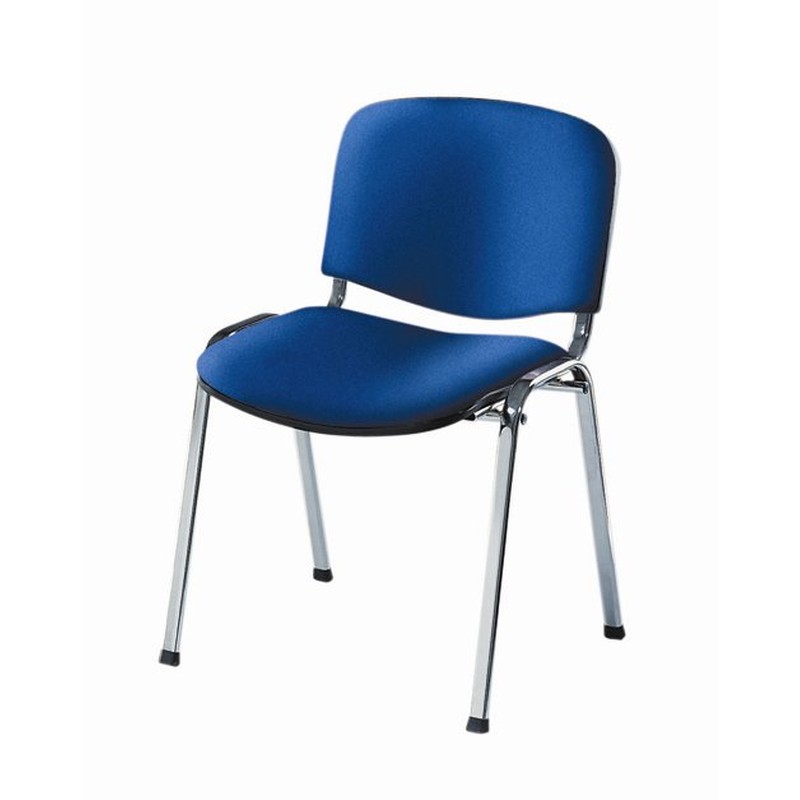 Офисный стул для посетителей «ИЗО» с сиденьем и спинкой, обитыми тканью синего цвета. Каркас выполнен из хромированного металла. Ножки стула снабжены накладками для сохранности напольного покрытия.