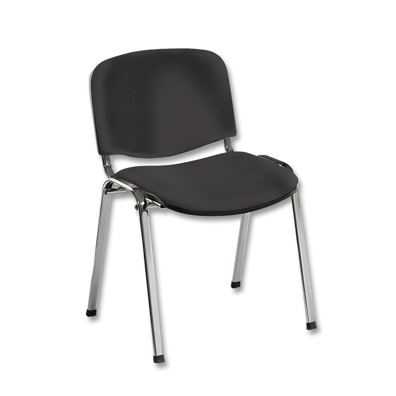 Офисный стул для посетителей «ИЗО» с сиденьем и спинкой, обитыми тканью черного цвета. Каркас выполнен из хромированного металла. Ножки стула снабжены накладками для сохранности напольного покрытия.