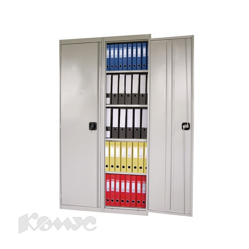 Шкаф для бумаг ШХА-100 (40), предназначенный для хранения большого количества документов. Состоит из двух секций, каждая из которых запирается на замок. В комплект входят полки, регулируемые по высоте и собираемые при помощи винтового крепления. Максимальная нагрузка на полку — 60 кг. Замки-ручки оснащены ригельной системой запирания в трех точках с бесшумным ходом. Размеры шкафа — 980×385×1850 мм.