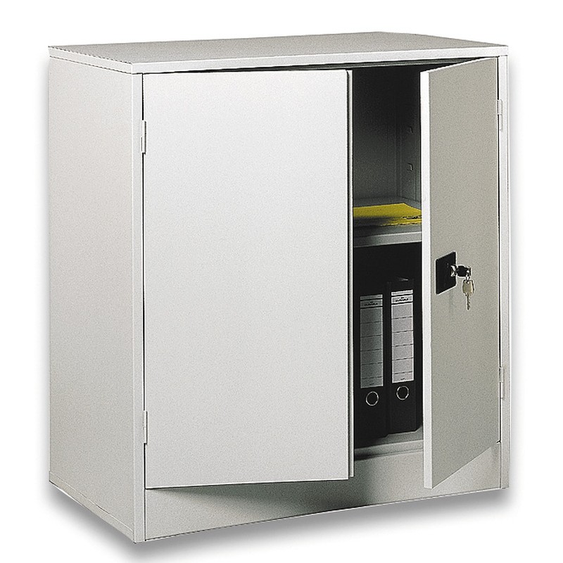Шкаф для бумаг Cobalt изготовлен из металла с порошковым покрытием серого цвета. Размеры — 90×85 см, глубина — 50 см. Распашные двери оснащены ключевым замком. Внутри одна съемная полка с возможностью регулировки по высоте. Шкаф вмещает большой объем документов, удобен для хранения архивных папок.