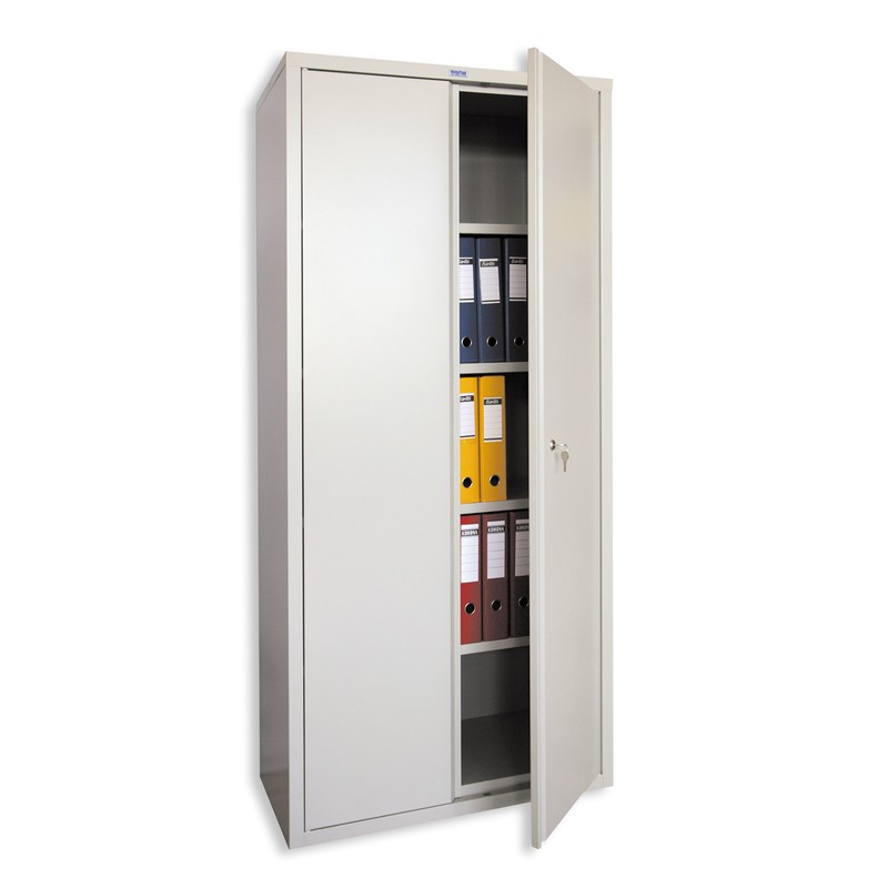 Архивный шкаф «Практик» серии АМ 1891, предназначенный для надежного и безопасного хранения документов в офисе, архиве, на складе. Полуматовый корпус серого цвета выполнен из металла. Устойчивая конструкция укомплектована четырьмя полками, каждая из которых вмещает 48 папок-регистраторов с допустимой распределенной нагрузкой на одну полку до 60 кг. Шкаф с двумя распашными дверями закрывается замком «Практик». Специальный механизм обеспечивает бесшумный ход дверей и их надежную фиксацию. Предусмотрена возможность установки дополнительных полок. Размер шкафа — 915×458×1830 мм.