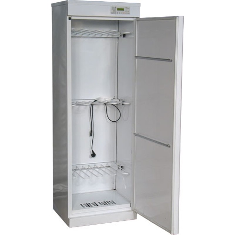 Сушильный шкаф HotStorm с одним отделением, предназначенный для сушки мокрой одежды, обуви, белья, а также различной спортивной формы и инвентаря. Оборудован тремя секциями для подвешивания одежды. Средняя и нижняя секции откидываются вверх для удобства сушки длинных вещей. Модель снабжена оптимальным набором программ: «максимально сухое», «нормально сухое», «влажное», «подогрев», «холодная сушка», «проветривание». Шкаф может использоваться в дачных домах или гаражах при пониженном напряжении в цепи электропитания. Размеры шкафа — 600×495×1800 мм.