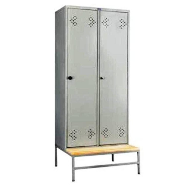 Подставка для раздевального шкафа «Практик» служит в качестве скамейки, делая процесс переодевания удобным. Размеры — 57,5×77 см, высота — 30 см. Сварной металлический каркас с покрытием серого цвета. Сиденье выполнено из сосны. Подставка отличается устойчивостью к высокой влажности и перепадам температуры.