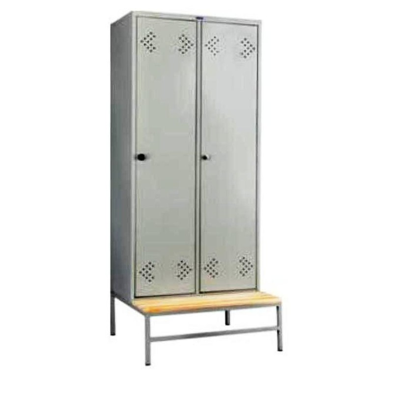 Подставка для раздевального шкафа «Практик» служит в качестве скамейки, делая процесс переодевания удобным. Размеры — 113×77 см, высота — 30 см. Сварной металлический каркас с покрытием серого цвета. Сиденье выполнено из сосны. Подставка отличается устойчивостью к высокой влажности и перепадам температуры.
