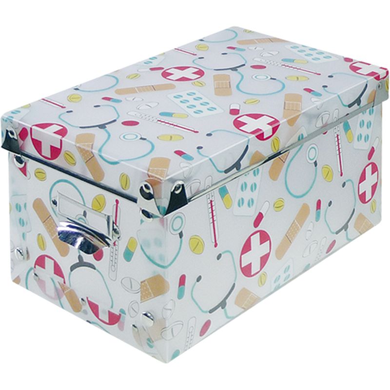 Короб для хранения медикаментов помогает сэкономить пространство дома и в офисе. Изготовлен из прочного, устойчивого к загрязнениям пластика с рисунком-подсказкой. Размеры — 25×15,5 см, высота — 13 см. Удобная сборно-разборная система на кнопках. Есть ячейка для маркировочной этикетки.