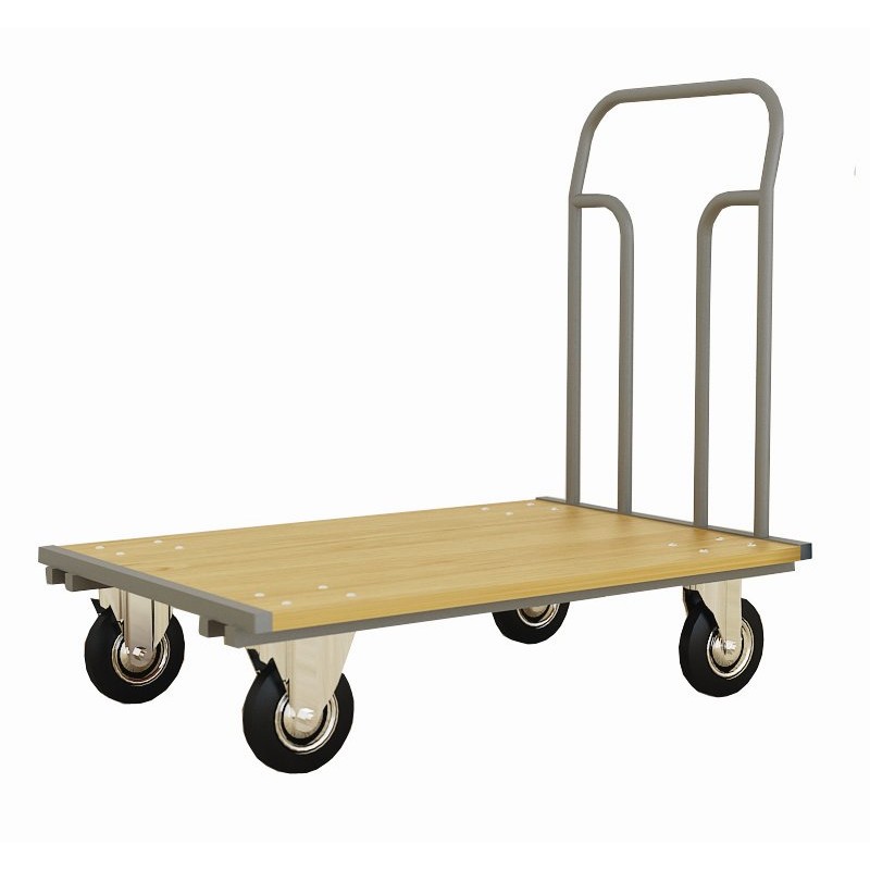 Тележка грузовая Т-001 имеет размеры 1020×660×980 мм. Каркас ее выполнен из стали серого цвета. Полка изготовлена из ламинированного ДСП. Тележка грузовая оснащена двумя поворотными и двумя неповоротными колесами. Имеет полимерное покрытие для защиты от повреждений. Грузоподъемность до 300 кг. Поставляется в разобранном виде.