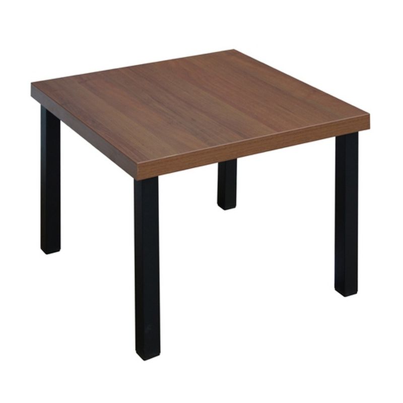 Журнальный стол «Триада» высотой 43 см. Столешница размером 60×60 см выполнена из деревоплиты (ДСП) с покрытием цвета орех, кромка отделана лентой ABS для защиты от повреждений. Журнальный стол имеет четыре металлические ножки алюминиевого цвета.
