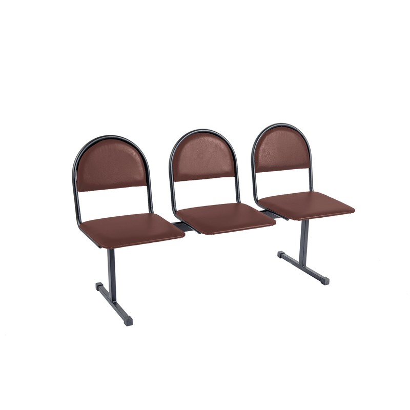 Многоместная секция «Тройка» предназначена для оборудования приемных, конференц-залов и других помещений с высокой проходимостью. Состоит из трех посадочных мест. Мягкие сиденья и спинки обиты кожзаменителем темно-коричневого цвета. Размер каждого сиденья составляет 40×42 см, высота посадки — 46 см. Каркас выполнен из металла с порошковым покрытием черного цвета. Габаритные размеры многоместной секции — 142×56×84 см. Поставляется в собранном виде.