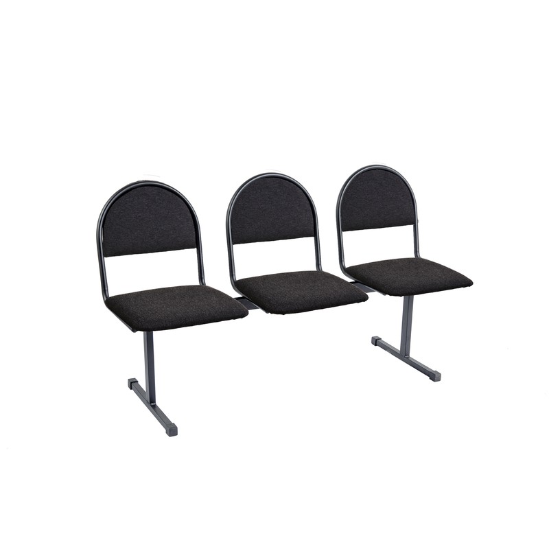 Многоместная секция «Тройка» черного цвета предназначена для оборудования приемных, конференц-залов и других помещений с высокой проходимостью. Состоит из трех посадочных мест. Мягкие сиденья и спинки обиты синтетической тканью. Размер каждого сиденья составляет 40×42 см, высота посадки — 46 см. Каркас выполнен из металла с порошковым покрытием. Габаритные размеры многоместной секции — 142×56×84 см. Поставляется в собранном виде.