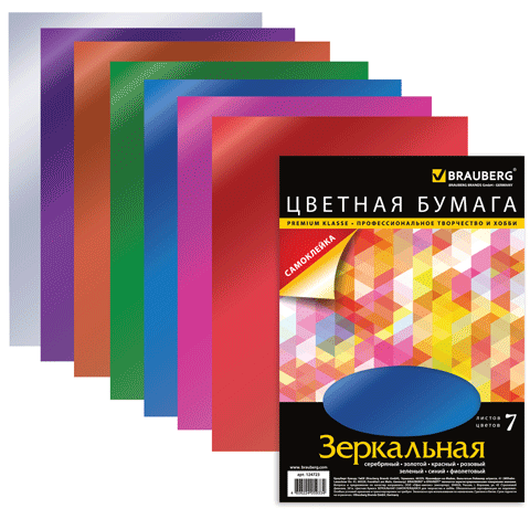 | Цветная бумага А4 210*297мм BRAUBERG ЗЕРКАЛЬНАЯ САМОКЛЕЯЩАЯСЯ, 7л., 7цв., 124723 |