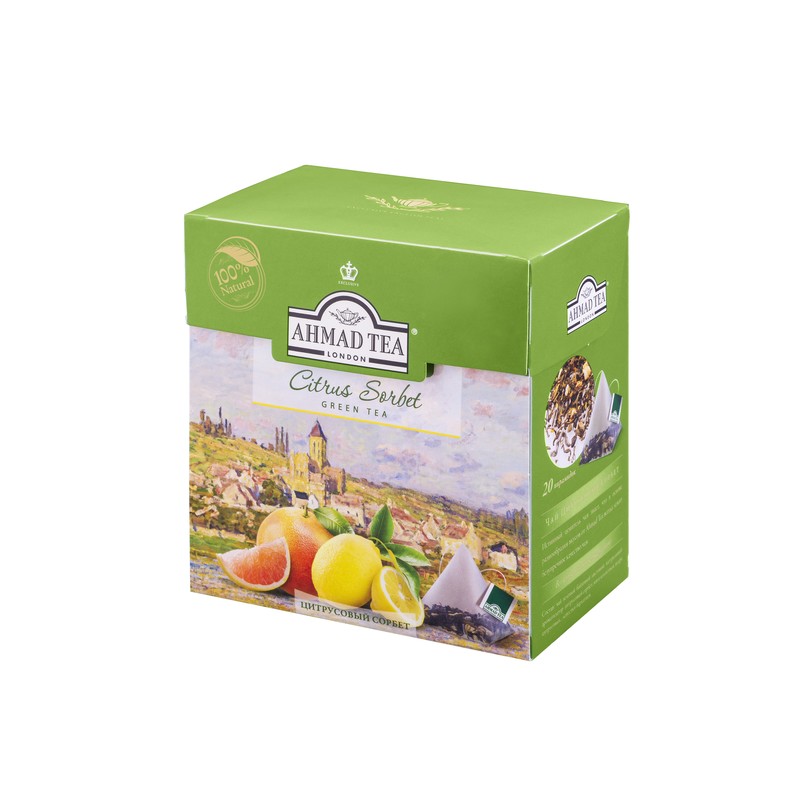 | Чай Ahmad Tea Цитрусовый сорбет зеленый пирамидки 20х1,8г |