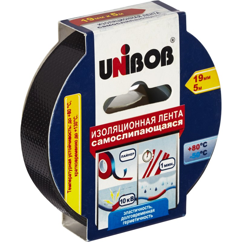 | Клейкая лента электроизоляционная самослипающаяся Unibob 19мм х 5м, черный |