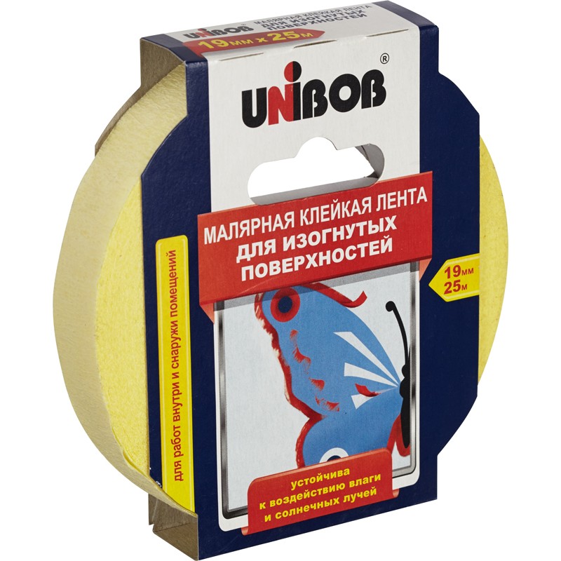 | Клейкая лента малярная для изогнутых поверхностей Unibob 19мм х 25м желтая |
