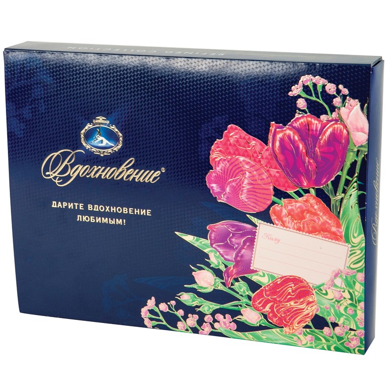 Название торговой марки Вдохновение Торговая марка Вдохновение Вес изделия нетто 150 г Тип упаковки картонная упаковка Схема вложения 8 Наполнитель марципан Страна производства Россия Вид шоколада темный Вид конфет шоколадные конфеты Размер упаковки 195х253х40 мм Артикул 393361 -