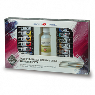 | Краски акриловые "Мастер класс", 12 цв. туба по 18мл + лак акриловый 120мл + 2 кисти, 12341966 |
